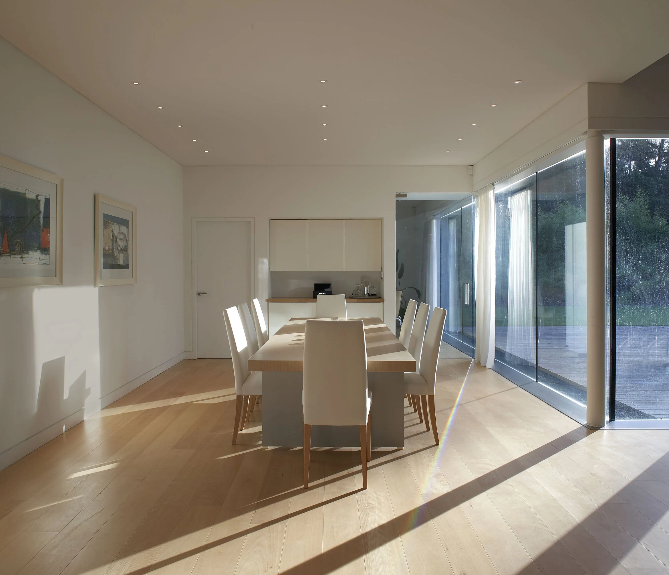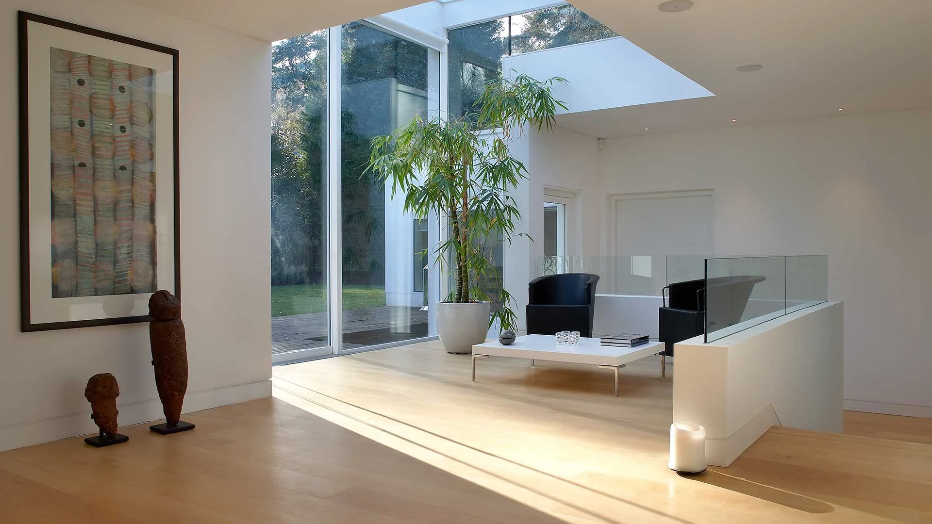 AVCIARCHITECTS provided a full modernization and interior re-design for this private villa, set in the natural beauty of an outer-London estate. The finished residence comprises a large multi-level living room and gallery, a conservatory and a library, a swimming pool, six bedrooms, and an annex guest wing.